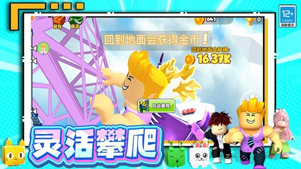 2、通过收集大量金币,可用于购买强大的翅膀与可爱的宠物,解锁并升级更强的属性,以此提升攀爬能力与稳定性;