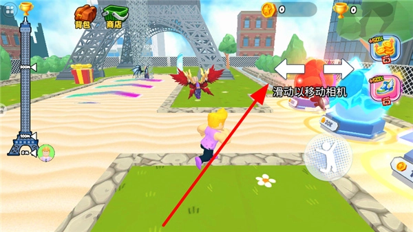 2、接着滑动右侧屏幕调整视角,借助辅助移动等操作快速登顶;