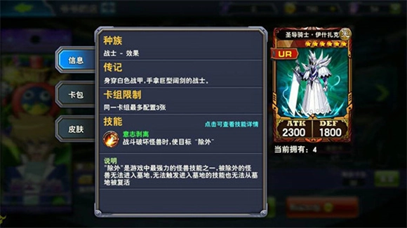 4、城之内的怪一开始攻击比较偏高(4星怪中两张1800、两张1700攻击怪兽),再加上其六星怪扎克2300的攻击(其技能也很变态)在这三个可选角色中也是一骑绝尘的,所以一开始能够占据很大优势,更重要的是其很难卡手。此外城之内的卡组里面还有黑龙,配齐之后后期黑龙卡组上分能力也是极强。