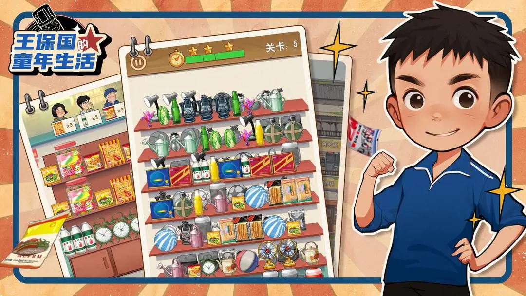 王保国的童年生活游戏属于休闲卡通风格的模拟经营类游戏,玩家在游戏里将化身王保国,和家人一同经营一家小卖部。在这款游戏中,玩家通过采购各类商品进行售卖来获取利润,有了利润就能对店铺进行升级,要是资金充足的话还能够开设分店。
