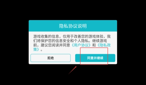 首次启动时需要阅读并确认用户协议条款,点击同意后系统会自动加载游戏资源,随后进入主界面。