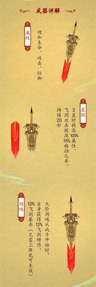 游戏里不同功法对应提升的属性各有不同,玩家能在藏经阁中领悟形形色色的功法,功法等级越高,成功领悟的概率就越小。当领悟的功法积累到一定阶段时,便能提升自身境界,境界对每一位习武者而言,都是实现自我突破的关键象征。
