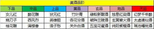 饮用美酒能够提升各项特殊属性,酒师的境界越高,所酿制酒的品质也就越好。