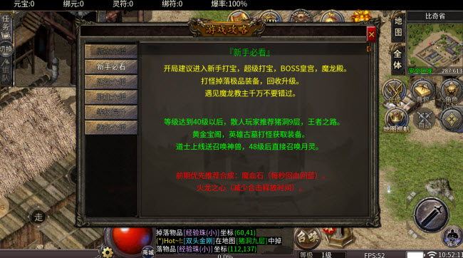 1、开局建议进入新手打宝,超级打宝,BOSS皇宫,魔龙殿。