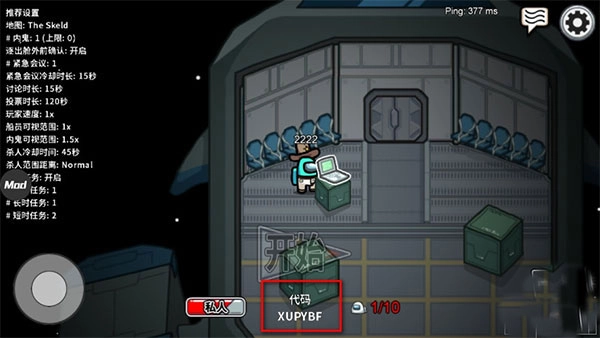 4、进入房间后我们可以看到下方有一个代码,也就是你创建的房间的密码;
