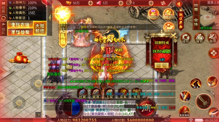 神农爽爽爽大超变,上线爆率拉满,刀刀暴击附带刀刀切割,属性变态但是没有秒杀!直接开干,怪物能掉落一切装备和武器。只要有时间,打怪就能获得你所需的任何材料。超多游戏地图,各个地图都有不同的怪物和boss,挑战性十足。