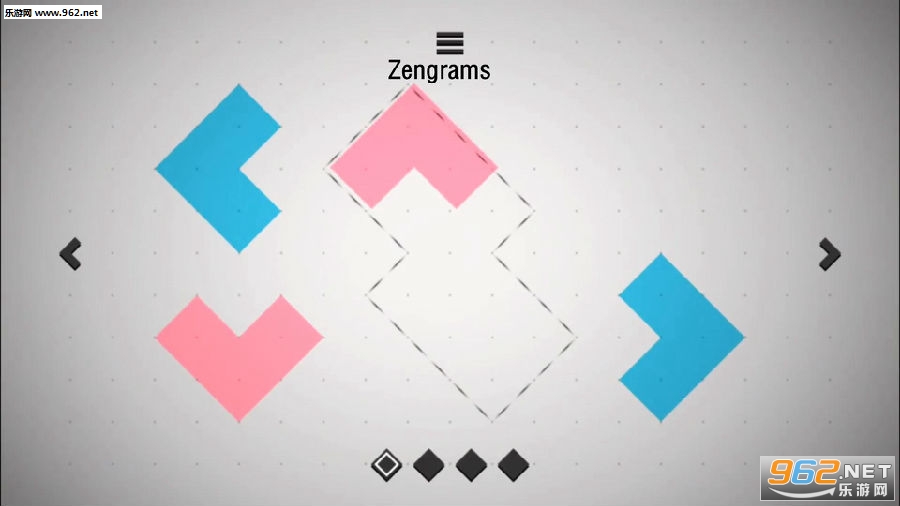 Zengrams是一款抽象风格的极简主义益智游戏,由Andreas Boye设计开发。这款游戏旨在借助看似简易的谜题来锻炼玩家的思维能力,玩家需要把各种形状重新排列组合,拼成正确的图案。在通过切割、拼接与定位寻找成功路径的过程中,还得谨慎规划并管理好有限的操作步数。