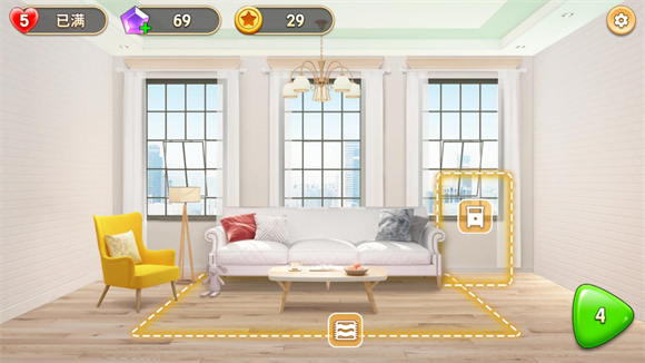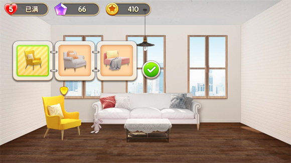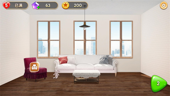 1、有非常多可以选择的家具等你去放置,通过的关卡越多解锁的家具类型越丰富。