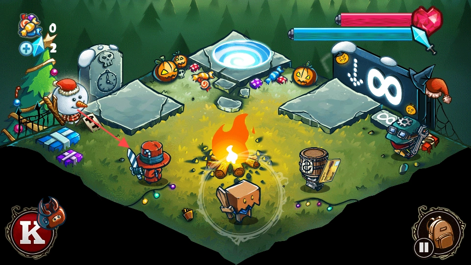 割草英雄采用创新操作机制,通过拖拽角色划出攻击路径,松开手指即可沿轨迹斩杀沿途所有敌人,简单操作便能实现大范围清场。融入少量RPG要素,可以在营地与戴红帽子的NPC交互,使用糖果提升角色属性,而闯关过程中收集的糖果也能直接增强战力。此外提供糖果关卡、限时关卡、无尽关卡三种挑战模式,可利用炸弹道具对抗强力BOSS,通过闪躲技能摆脱怪物围攻,在绝境中体验逃离迷宫的惊险刺激。