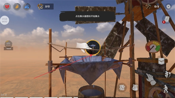 3、根据提示点击集水器开始储水,操作集水器,启动储水功能。