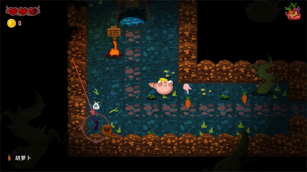 1、根据提示吃掉3根胡萝卜,接着前往便便便桶的位置,推动游戏进程。