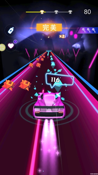 3、按照屏幕上的节奏提示进行漂移或加速操作,精准把控每一个音符节点。