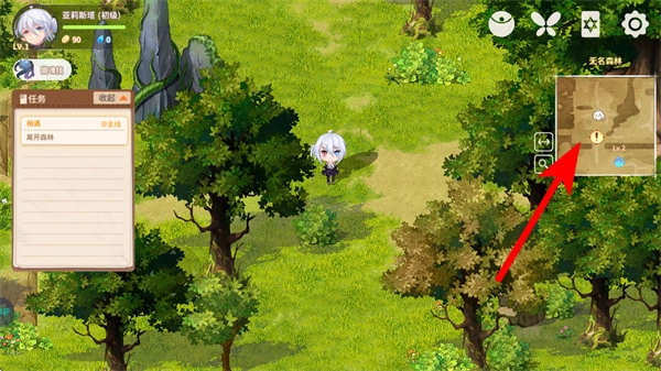 2、在场景界面中,点击箭头指引的地图区域,可查看当前区域的探索进度,这是了解场景布局的基础操作。