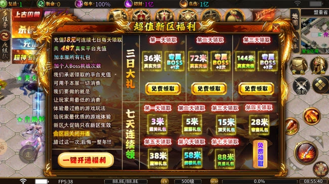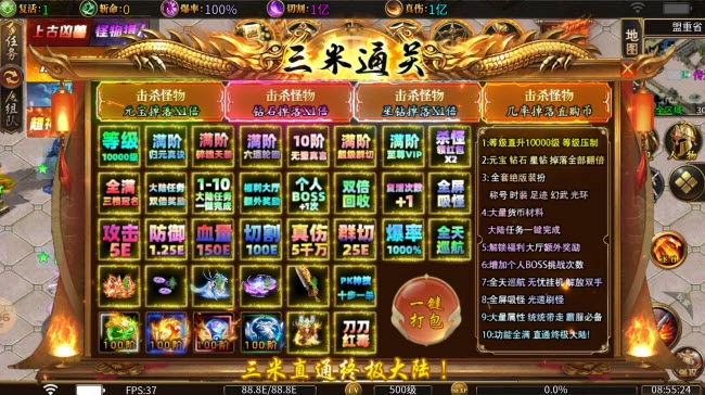 盛杨超超超变,属性堪称离谱,上线即赠切割,刷怪体验拉满,绝非秒杀流。各类酷炫霸气的装备武器均可通过打怪获取,海量游戏地图与副本等你探索,只要肯投入时间就能集齐所需物品,对散人玩家十分友好,零氪也能顺利通关,非常值得长期沉浸体验。