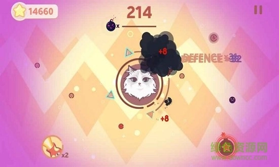 猫咪的周身环绕着一圈保护罩,操控它便能抵御敌人的进犯,不过这层保护罩也会出现损耗。