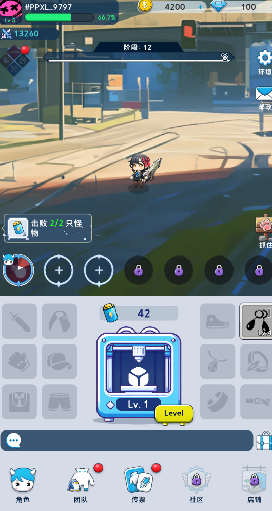 1、通过开箱子获得装备,提升自己的能力