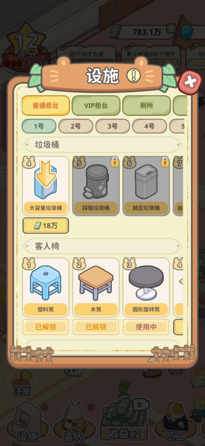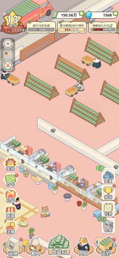 玩家可升级钱庄并灵活添置设备与家具,提高员工效率,为顾客提供更优质的服务。