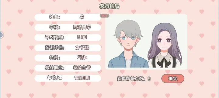 虽然场景总共只分为校内和校外两大模式,用一个页面就能概括,但每个选项都具有养成意义。校内设有非常丰富的课外活动,即便仅以文字形式呈现,玩家也能从自由视角在校内探索:可以参加社团活动的比赛赢取奖金,也能在食堂兼职,甚至到校道闲逛,听听他人对自己的看法。因此,其养成体系如同一个小社会圈,各方面内容都能得到展现,体验过程中完全不会无聊,提供的内容足够玩家在这四年里尽情探索。