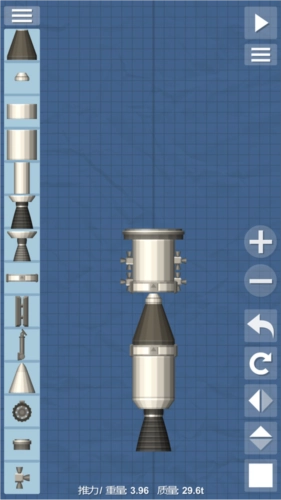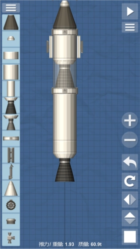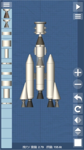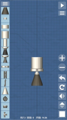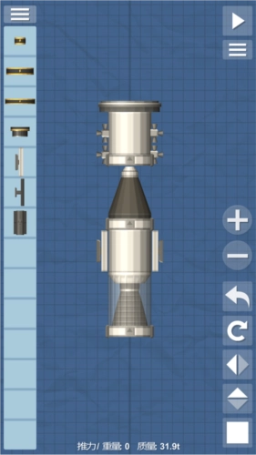 首先启动游戏创建一枚新火箭,火箭的结构布局可以围绕正三角形的思路来设计,采用底部较粗、顶部渐细的形态,这样能实现较为理想的配重比例。