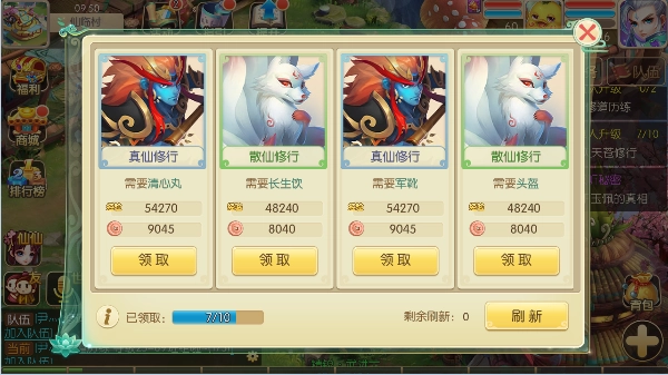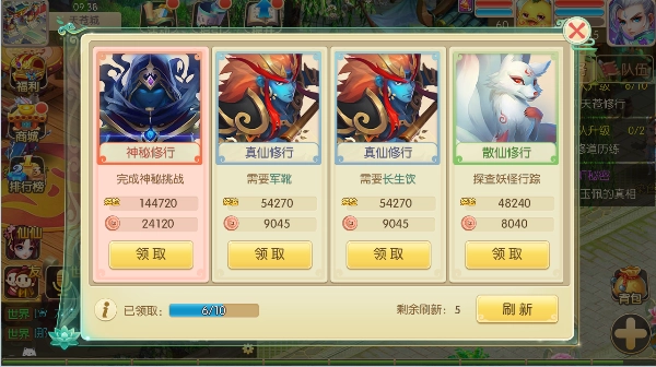 修行任务的次数每天5点刷新,当天未完成的任务不会延续到第二天。每日有十次任务机会和十次刷新任务的机会,每次刷新仅针对未领取的任务生效,已领取的任务不能取消。