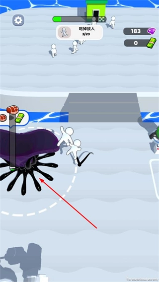3、在对局过程中操控毒液触须,通过吞噬场景里的敌人以达成关卡目标。