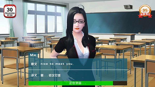 除了剧情外,《恋爱口令》的玩法也是一大特色。和其他同类恋爱游戏相比,它加入的录音练习元素着实给玩家带来了不少惊喜。这个设定让玩家在玩游戏的同时,还能顺便锻炼英语口语能力,堪称一举两得。当然,考虑到玩家的不同情况,游戏里还贴心地为每句对话和旁白都配上了中文翻译;就算你英语口语不太好,也可以用跳过功能略过录音环节,这样英语基础薄弱的玩家也能完整体验所有剧情了。感兴趣的朋友不妨来试试吧?