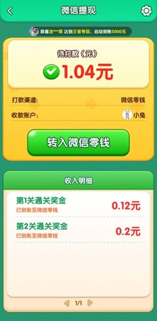 2、通过2关即可提现0.2元,资金会立即到账微信零钱!付款商户显示为“福泽云服”。