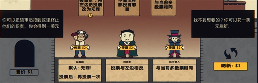 3、既能够通过出售陪审员来获取金钱,也可以花费金钱刷新出全新的陪审员。