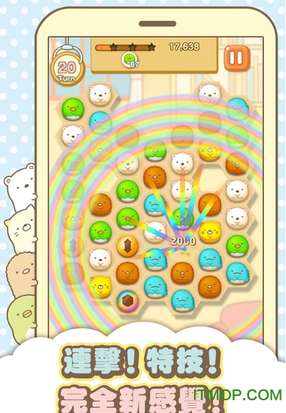 和软萌可爱的角落小伙伴们一起,看它们偶尔迷糊可爱的小举动,尽情体验全新的4消游戏乐趣吧!