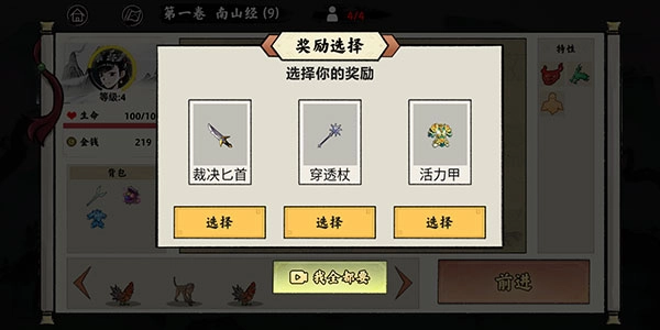 3、问号:进入后触发随机事件,提供三个选项,可以获得武器、异兽、特性或恢复生命等效果。