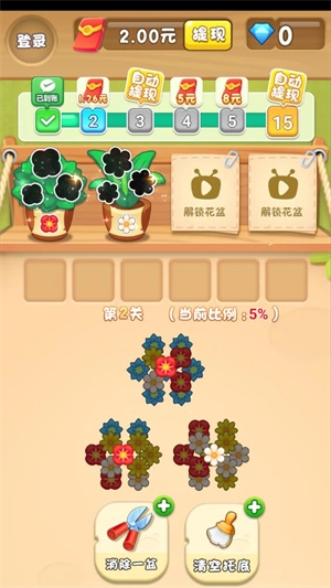 1、游戏里有不少花朵等着玩家去收集消除,只要积累到三朵相同的花朵,就能消除它们并领取红包。