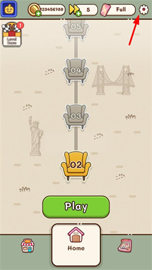 玩家可直接启动游戏,接着点击右上角的齿轮图标,即可进入设置界面。