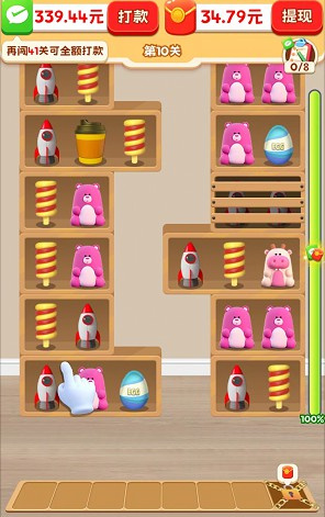 福运货架游戏里还有另一项奖励机制,它是依据关卡数来实现提现的。例如刚开始玩的时候,只要通过第一关就能提取0.1元,之后闯过第50关还有机会再进行一次提现操作,但提现是有相应条件的。当我们成功闯过50关后,还需要累计获得1000(这里原文未明确单位,推测可能是积分或金币等虚拟货币单位),同时完成6天的打卡任务,并且视频等级达到10级才可以。