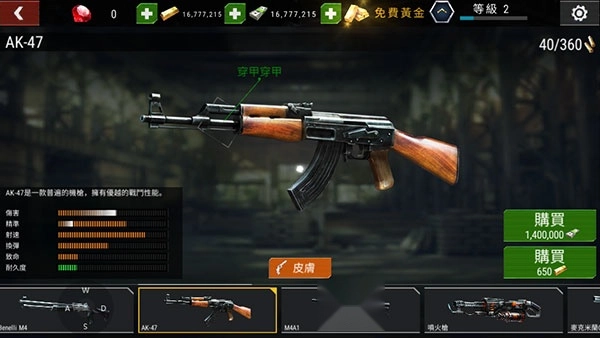 在游戏里获取的钞票和金条可以用来升级或更换武器,以此增强武器威力,这样对付僵尸时会更轻松。建议玩家在游戏前期优先升级一把武器,不必把所有武器都升级(如果钞票和金条储备充足则无需顾虑),这样能让武器威力得到更显著的提升。