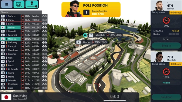 4、界面右下角会呈现车手相关信息,涵盖维修站情况、比赛策略以及状态调控等各类内容;