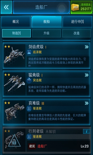 基地的造船厂能够建造各类舰船,对造船厂进行升级则可以增加每次建造舰船的数量。