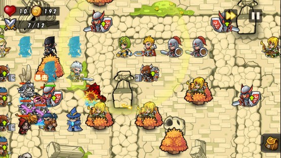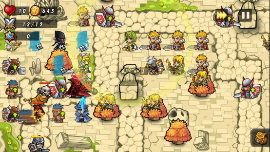 3、中期阵型:5、6波之后可以考虑再出一个神射手打掉第二根柱子,然后在补一些矮人和大剑士