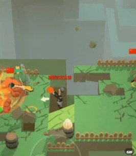 游戏里有不少地面是凸起的,或者放置了很多箱子、木桶。我们能够借助这些场景里的元素来防御,并且角色举手的高度刚好能越过掩体,在躲避攻击的时候还能果断反击。