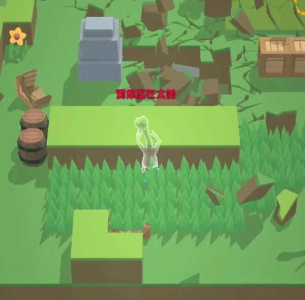 此外,场景里还加入了MOBA游戏中常见的草丛设定。一旦进入草丛,角色就会进入隐身状态,外面的鸡无法发现你的踪迹。要是你不想卷入激烈的正面战斗,选择躲在草丛里当个“老阴B”,等时机成熟再出手夺取胜利,这也是个可行的策略。