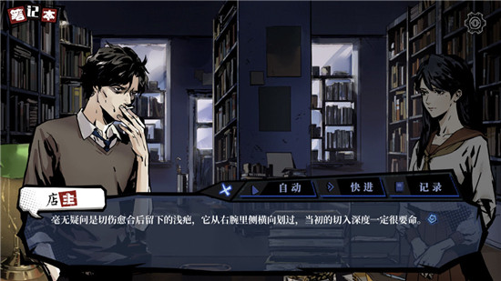 每当“送书人”造访后,观看书架上的书,获得情报。