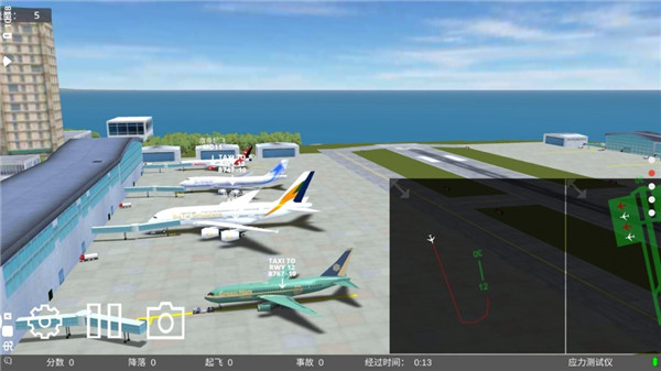 体验飞机驾驶员的视角或飞机场的俯瞰视角,了解飞机场的场景配置。