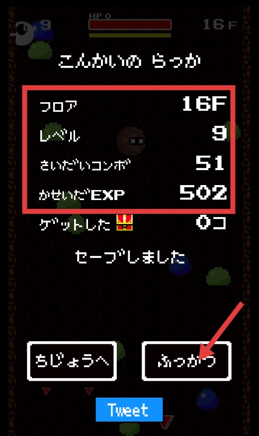 4、完成【16层】的通关后查看结算界面,记录下【等级-9】【最大连击-51】这类数据,接着点击【复活】按钮继续进行冒险。