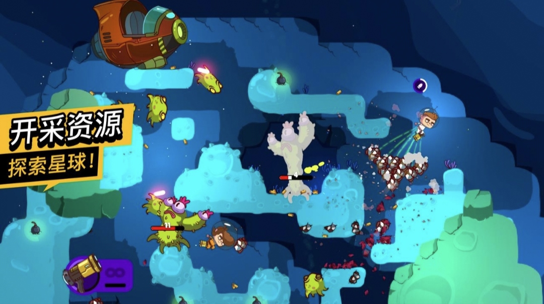 3.这款游戏的资源需要驾驶飞船前往不同星球或其他飞船进行收集,每个关卡都充满趣味,战斗与收集资源相结合的设计和横版射击游戏颇为相似。