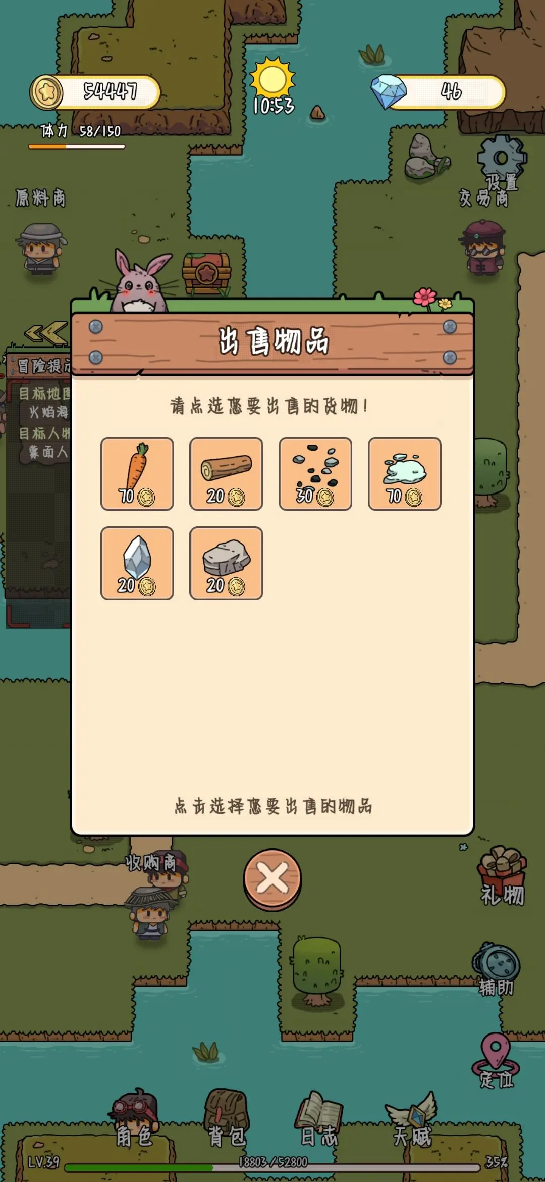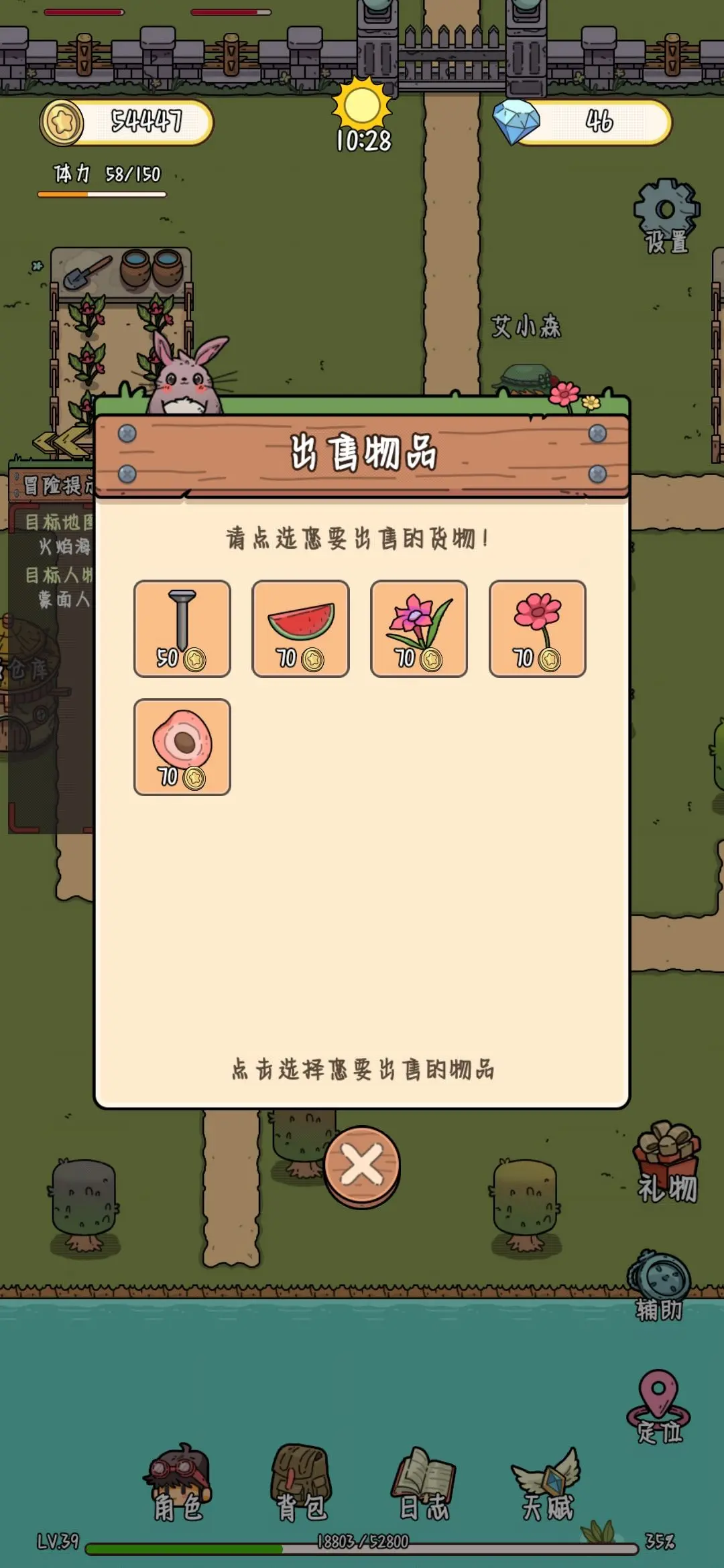 ③等天亮了,先把耕地收了又再种回去,先去商店把种的东西卖了(不要都卖了,留一点自己用),然后去商人村卖了晚上砍的树再去跑任务
