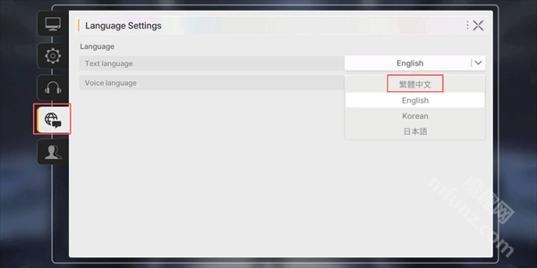2、选择下方的第四个语言栏,把Text language切换成繁体中文即可。