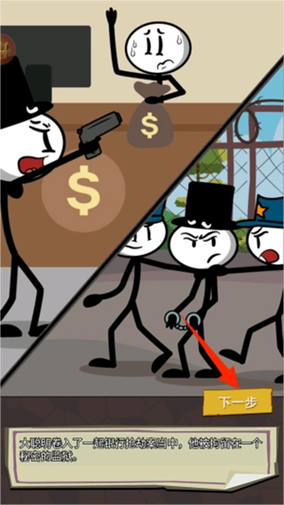 1、简洁火柴人风格与精巧机关结合,黑白线条场景中藏着许多有趣的互动细节;