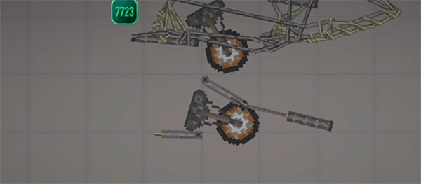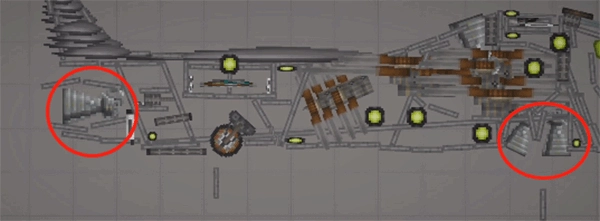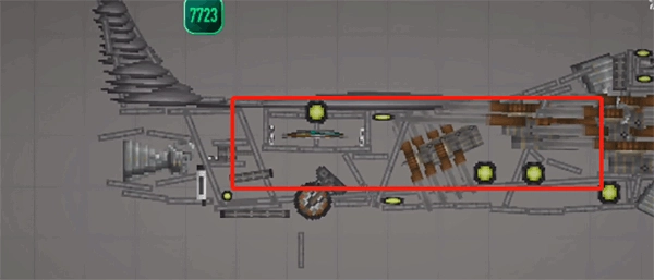 需要注意的是,这种不稳定的结构必须加上支柱——也就是机头中间的长铁块,将其调成无重力且不碰撞的状态,然后连接到机头外壳就可以了。