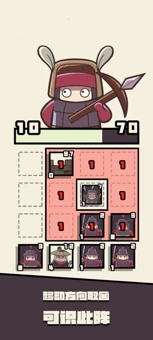 3.操作方式:采用与2048相似的操作逻辑,玩家通过移动单元格来控制小兵。每次操作仅能移动一个单元格,因此需要谨慎做出决策。