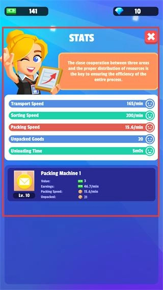 这是一款十分有趣的放置类模拟经营游戏,在游戏里玩家会化身快递物流大亨,需要迅速地对各式各样的物品进行打包并发送出去,借助铁路、海运、空运等多种不同的运输途径,让快递快速抵达目的地。该游戏操作简便,易于上手,很适合推荐给喜爱休闲放置类游戏的玩家。