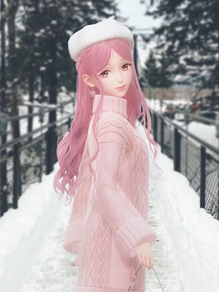 暖暖初雪套(亲密度达到20后花费大约700-800钻做出,稀有),发型估计叫粉岚。